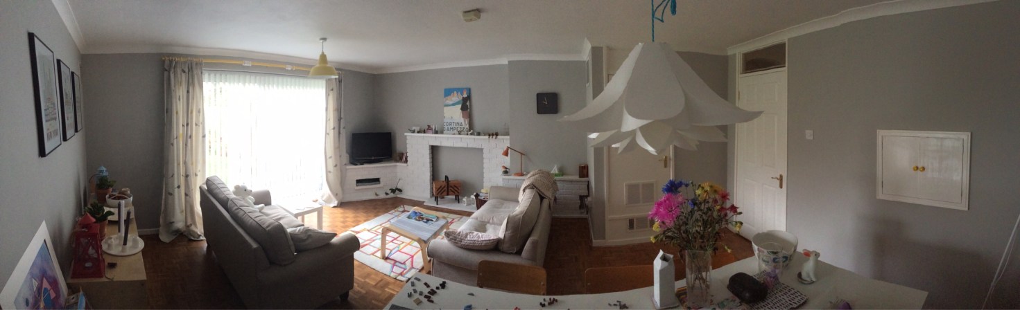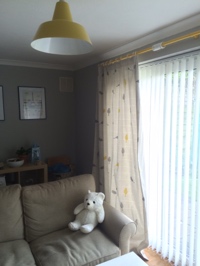 A second area was the patio door. It was my aim to get curtains in time for winter, to try and be more energy efficient. I also wanted to make them myself but I just couldn’t find the right thing. I was looking for something bright with a geometric pattern, I did find one fabric by flock in Liberty of London, but at £70 a metre, they’d of cost me ~£1500. So I had to make a sacrifice and eventually purchased a pair from John Lewis in bird on wire fabric, they are grey with white, grey and yellow birds. The patio door width is 2.9 m, so 4 curtains are required, I currently only have 2 as I want a pair of white curtains in the centre. However, you won’t believe how hard it is to find a white pencil pleat curtain with a cotton lining.