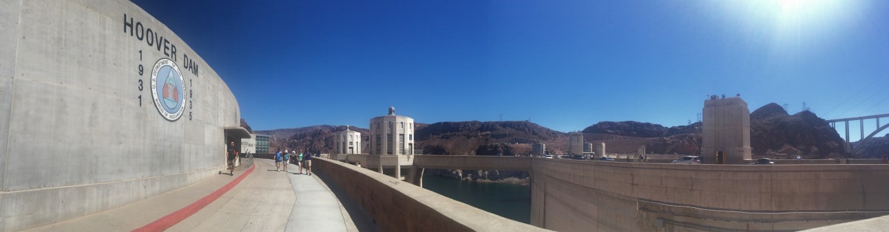 The following morning was another early start and time to say goodbye to my roomie and head to the Hoover dam. I’d organised my tour through grayline coaches and chose the Hoover dam express and the deluxe option only including the addition of a visit to a chocolate factory not something I fancied wasting 3 h on. The tour started in the power plant. It is astounding to think that the turbines and internal cranes that were put in, in the 1930s are still going strong today, especially when an iPhone with all its apparent modern technology just about lasts 2 years (if you’re lucky). I hadn’t even thought about how they made the concrete set so quick, but they had designed a system whereby cold water ran through the centre of the blocks therefore allowing them to complete the project 1 year ahead of schedule. It also generates enough energy to power Las Vegas, although they receive a limited output of 25% with the rest going to LA and other cities. After the power plant I walked over the dam, it’s quite wide as it has a road. It used to be a traffic nightmare but they have since built a bridge so it’s no longer a major highway. It’s a good job I’m not afraid of heights as its a long way down when you look down the smooth side of the dam.